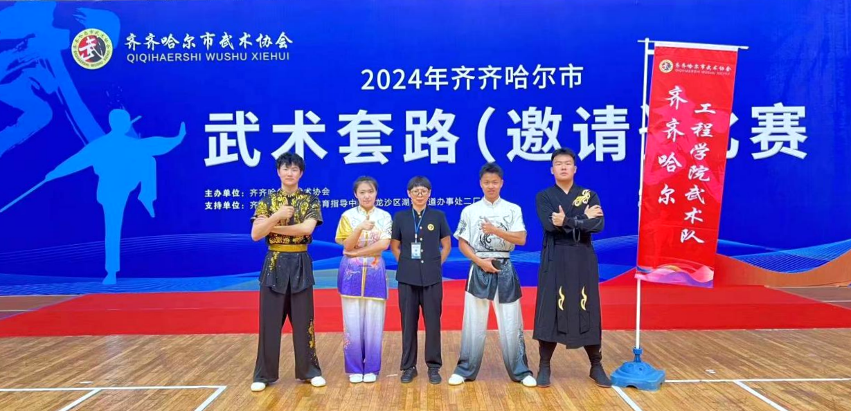 近日,“2024年齐齐哈尔市武术套路(邀请)比赛”在波司登体育馆圆满闭幕。我校武术队与太极柔力球队选拔出11名优秀学生代表学校参赛。比赛中,我校武术队5名学生展现了出色的武术技艺,他们共参与了12个个人单项比拼,最终斩获4枚金牌、5枚银牌和2枚铜牌;与此同时,我校太极柔力球队首次报名武术集体器械项目,8名学生凭借卓越的团队配合与技艺,荣获了一等奖。此外,学校还荣获了“体育风尚奖”,基础部的韩淑梅、董鑫超、周长满三位教师因在指导训练和比赛中表现出色,被授予“最佳教练员”的荣誉称号。