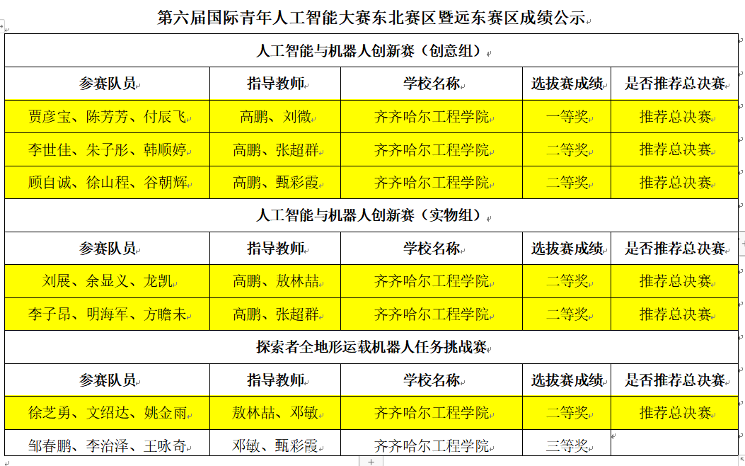 7月8日,第六届国际青年人工智能大赛东北赛区暨远东赛区选拔赛比赛结果公布,我校机电工程系学生共斩获一等奖1项、二等奖5项、三等奖1项,其中一等奖、二等奖队伍获得总决赛资格。