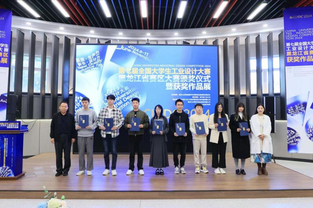 近日,第七届全国大学生工业设计大赛黑龙江赛区颁奖仪式在哈尔滨工业大学建筑与设计馆举行,我校机电工程系机械设计制造及其自动化专业学生李子昂、方瞻未、明海军荣获黑龙江赛区一等奖(晋级国赛),龙凯、高原、余显义荣获黑龙江赛区三等奖。机电工程系高鹏老师获评优秀指导教师。
