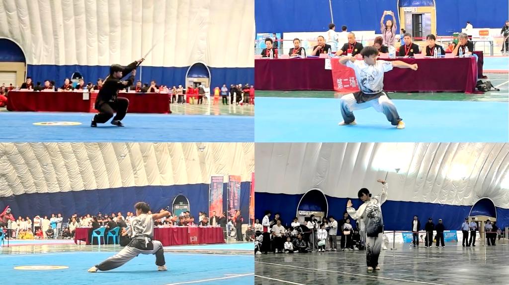 比赛现场,我校武术队的队员们身着整齐的武术服,精神抖擞,自信满满。比赛中,队员们的动作行云流水、刚劲有力。队员卢昊勇猛的剑枪、邱胜杭南棍、漆雄辉的南刀与少林拳、杨斐赫的苗刀、张一涵的劈挂拳、王鑫煜的九节鞭、应知峰的春秋大刀以及徐永佳的长穗剑等,无论是拳法的出击,还是剑术的挥舞,都展现出扎实的基本功和精湛的武艺,一招一式均获得了现场观众的阵阵掌声与喝彩,赢得了裁判的高分成绩。