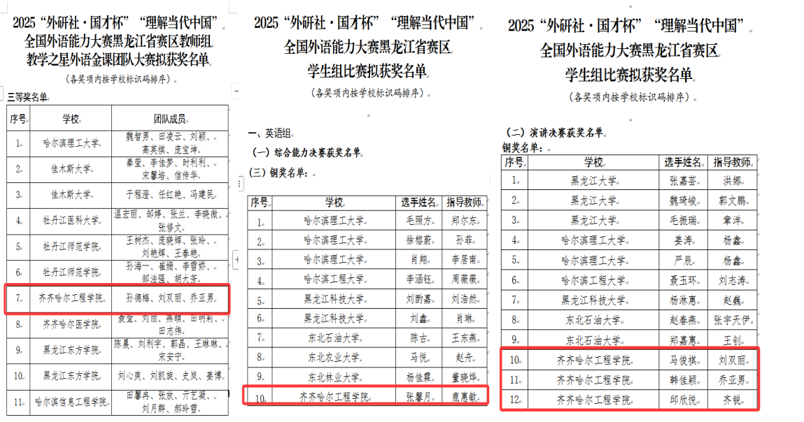 近日,2025年“外研社·国才杯”“理解当代中国”全国外语能力大赛黑龙江赛区获奖结果揭晓,乐投app官方在线入口师生凭借扎实的语言功底与出色的综合素养,在多个赛项中斩获省级荣誉。