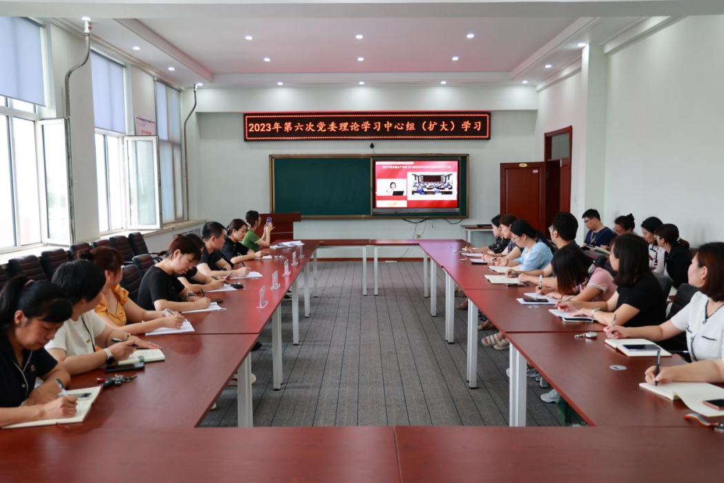 7月21日上午,学校党委在图书馆608会议室召开2023年第六次党委理论学习中心组(扩大)学习会,会议以视频的形式,学习省委党校(省行政学院)教授张英作的《坚定不移全面从严治党 深入推进新时代党的建设新的伟大工程》宣讲报告。党委书记郭伟东主持会议并作总结讲话。