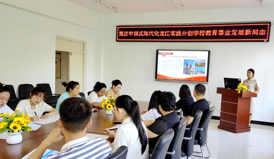 陈景鑫以《推进中国式现代化龙江实践 开创学校教育事业新局面》为题,围绕推进中国式现代化龙江实践和开创学校教育事业发展新局面两个方面,结合学校工作实际,为与会人员上了一堂生动的党课。