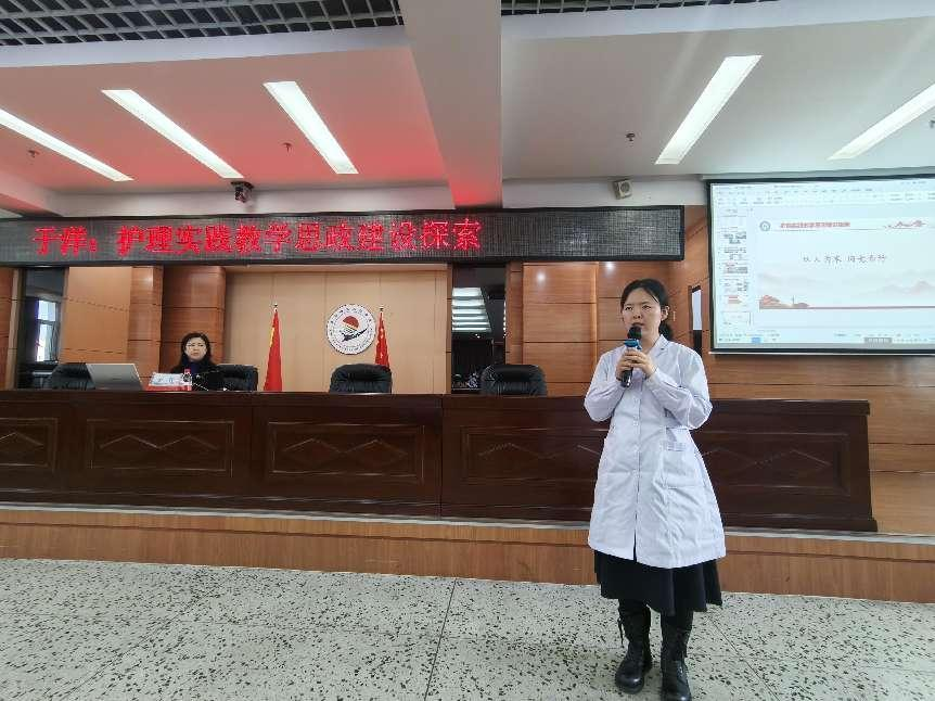 于洋代表首先以人大代表身份向与会人员讲解两会会议精神,结合自己的参会感悟传达了习近平总书记在参加江苏代表团讨论时的重要讲话精神,并对在全国人大会议期间自己提交的4项议案、8个建议进行说明。对提高思想认识领会纲领精神、加强护理实践教学思政建设、创新护理实践思政教学模式三个方面进行详细讲解,报告讲述新冠肺炎期间,黑龙江省援鄂医疗队的典型事迹,以及西安交大前任校长王树国的“家国情怀”。于洋表示,在教学中,教师要挖掘课程所蕴含的思政元素,有机融入临床实践教学。