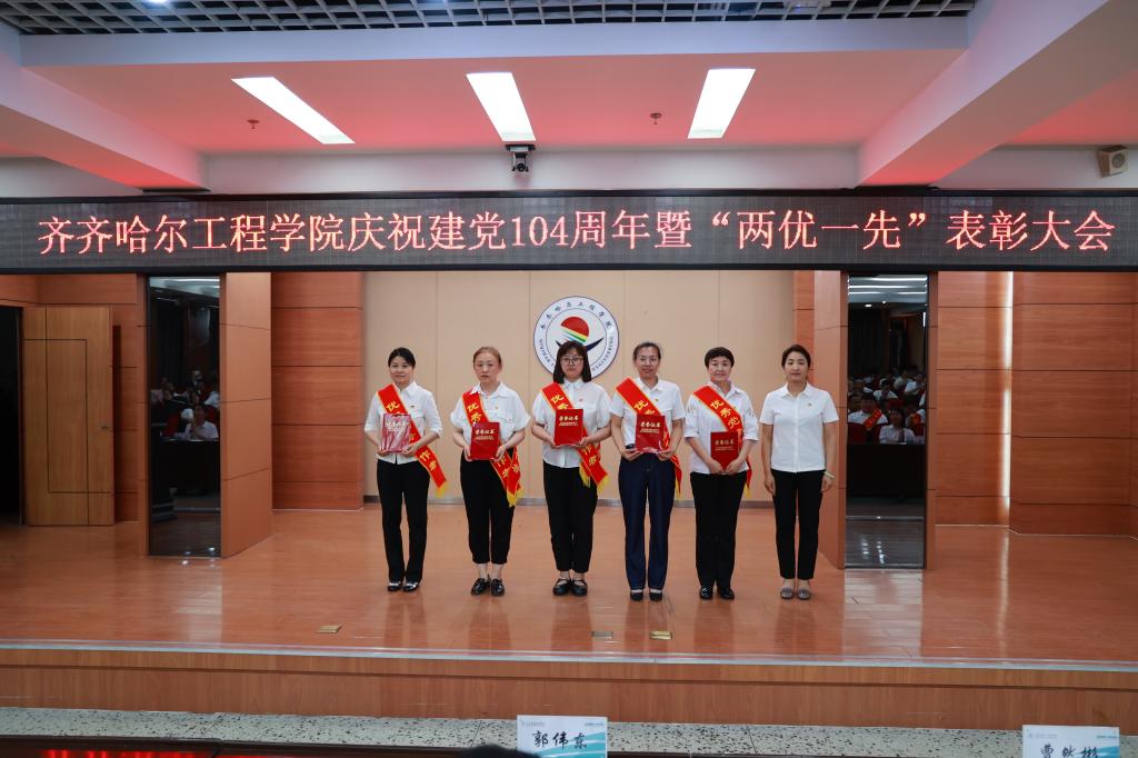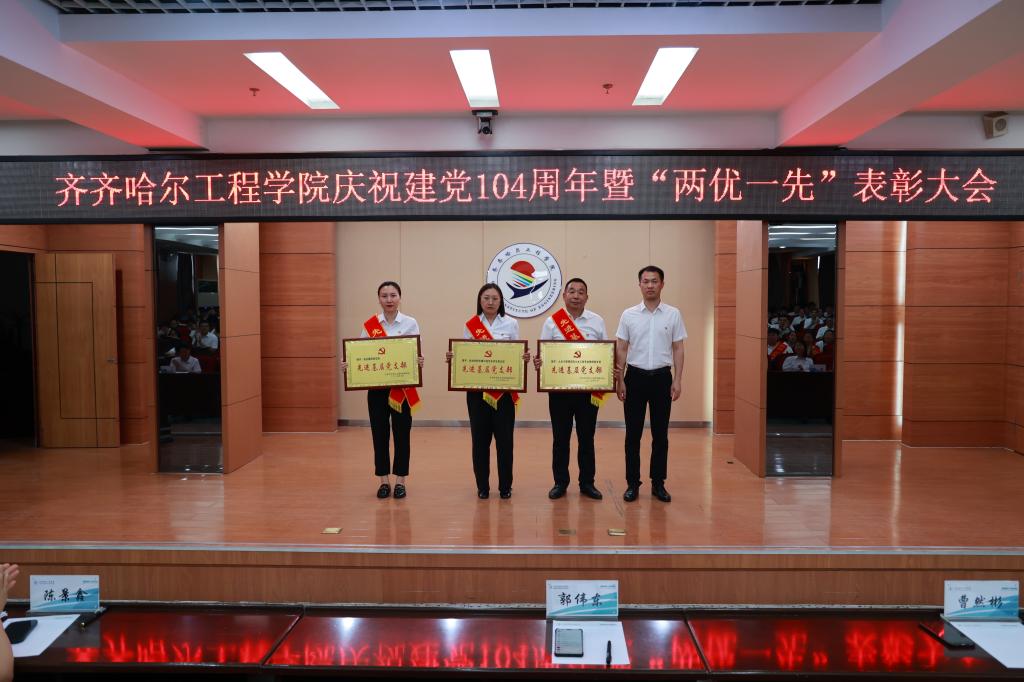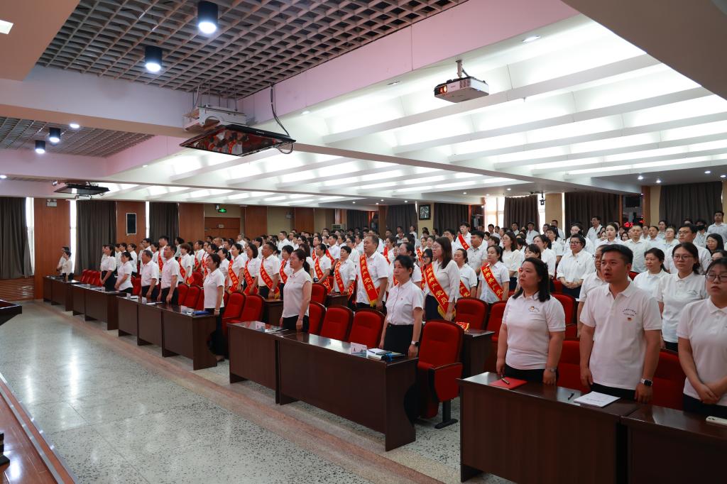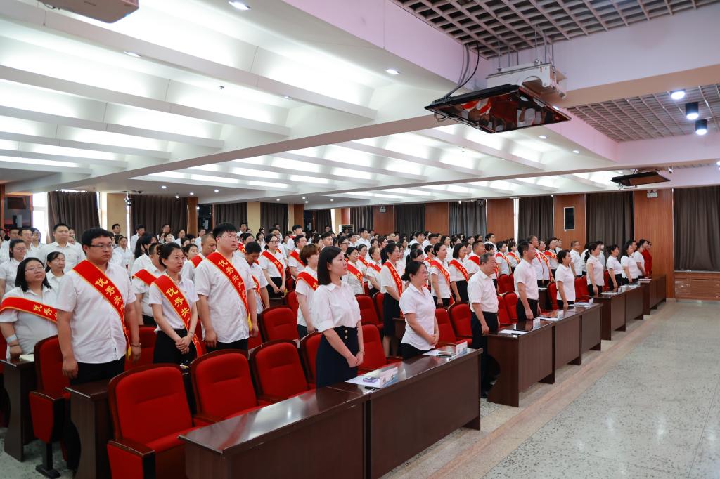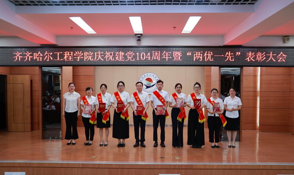 为庆祝中国共产党成立104周年,表彰先进,进一步激励全校各级党组织和全体党员推进党纪学习教育走深走实、推动学校党建与业务工作深度融合,7月1日下午,学校在图书馆601报告厅举行庆祝中国共产党成立104周年暨“两优一先”表彰大会。校级党员领导干部、受表彰的先进集体代表、先进个人以及师生党员参加。