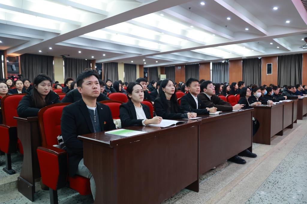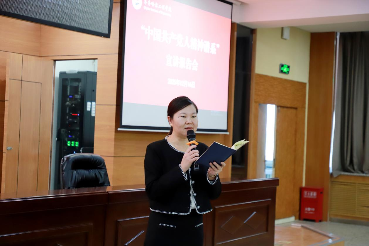 为深入学习贯彻党的二十届四中全会精,弘扬光荣传统,赓续红色血脉12月16日下午,学校在图书馆601报告厅举行“中国共产党人精神谱系”宣讲报告会。学校党委委员、党委宣传统战部部长张苗主持会议。各二级党组织书记、副书记,各基层党支部书记,马克思主义学院全体教师以及来自四个学院的学生代表共同聆听报告