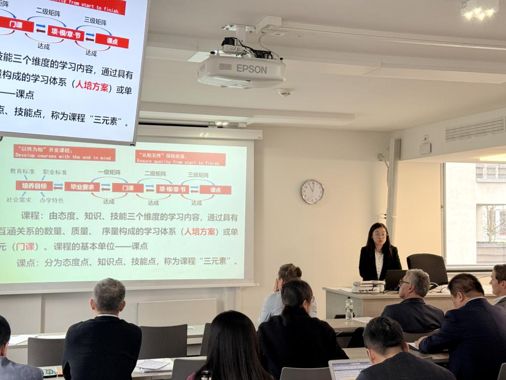我校信息工程系主任李野介绍了“四真三化”(FT)课程建设模式的基本逻辑。康护工程系主任郭玲玲、建筑管理工程系主任徐明、机电工程系主任敖林喆和与会的中德应用型教育专家就“四真三化”(FT)课程建设模式的课程设计原理、质量保障体系构建等方面展开了热烈讨论。