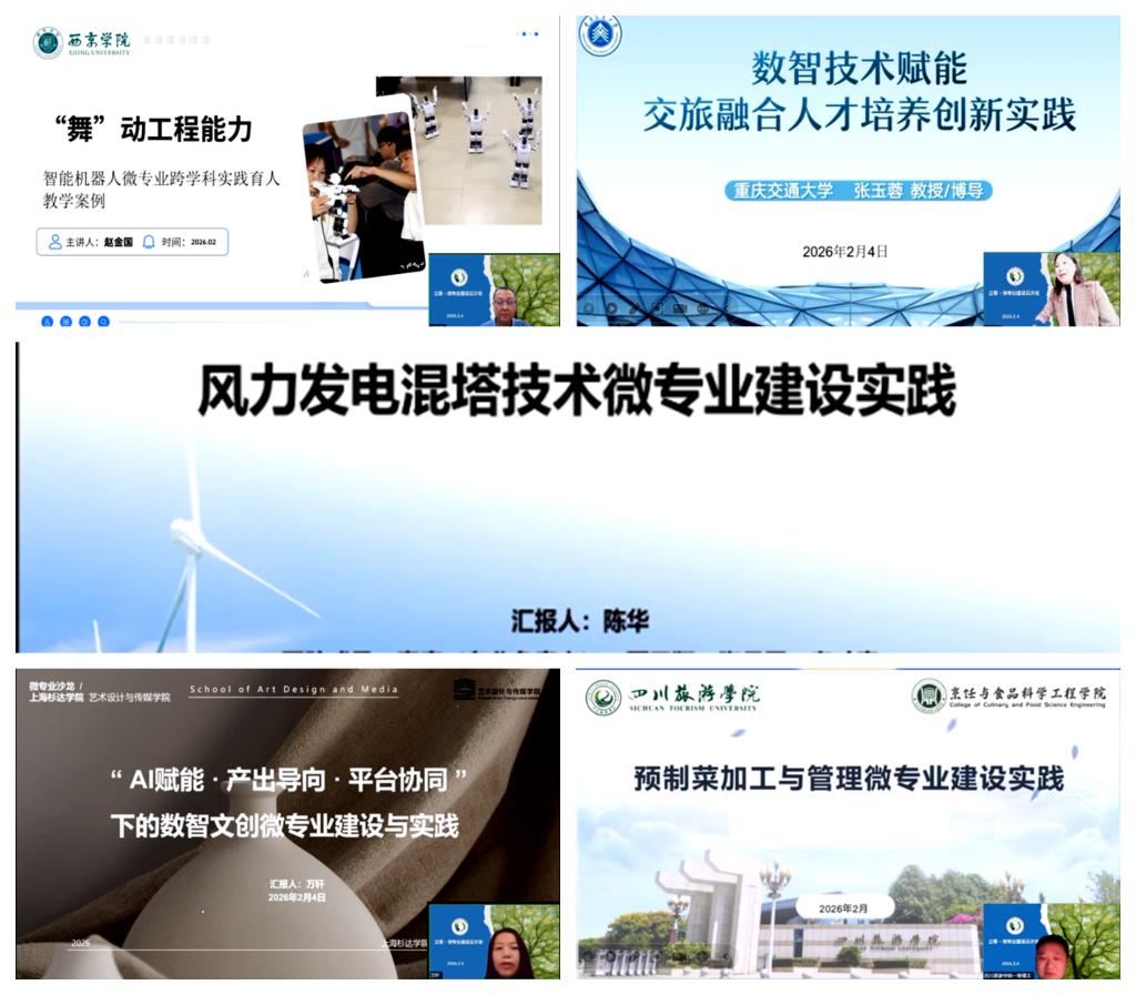 2月4日,由应用型课程建设联盟主办、我校承办的“立春·微专业建设云沙龙”在线举行。沙龙围绕“微专业建设原理与方法”主题,从学理逻辑、建设机制、数智赋能、平台协同等维度展开热烈研讨。活动通过微信视频号、抖音等平台进行公益直播,吸引了超过3000人次在线参与。