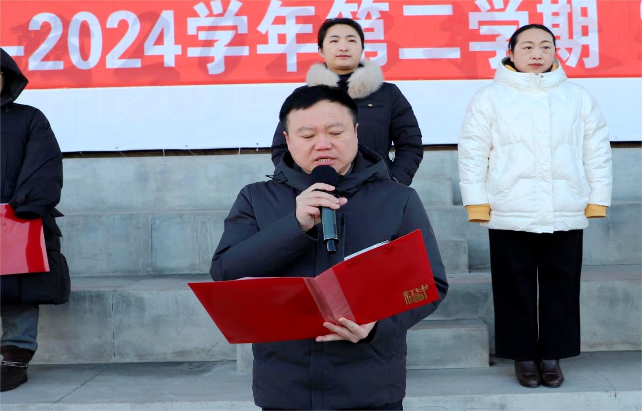 学校学生会主席杨嘉赫宣读新学期倡议,表示,新学期要认真制定目标计划,合理安排学习生活,以饱满的状态、崭新的姿态和积极的行动为学校增光添彩。