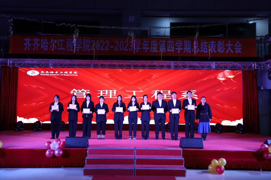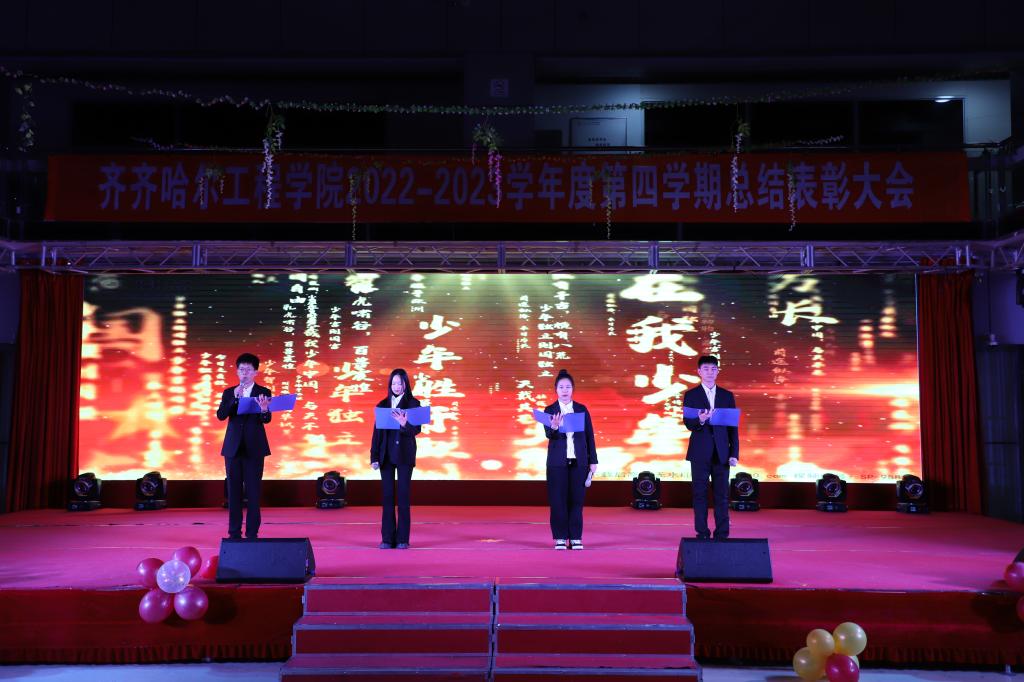 学生工作处姜宏伟宣读《关于表彰20222023学年度第四学期社会实践优秀学生、优秀指导教师(生涯导师)优秀团队的决定》。机电工程系机械221班王谊国等263名学生被评为“20222023学年度第四学期社会实践优秀学生”徐立志等30名教师“20222023学年度第四学期社会实践优秀指导教师(生涯导师)”荣誉称号管理工程系GL-025组等6个小组被评为“20222023学年度第四学期社会实践优秀团队”。