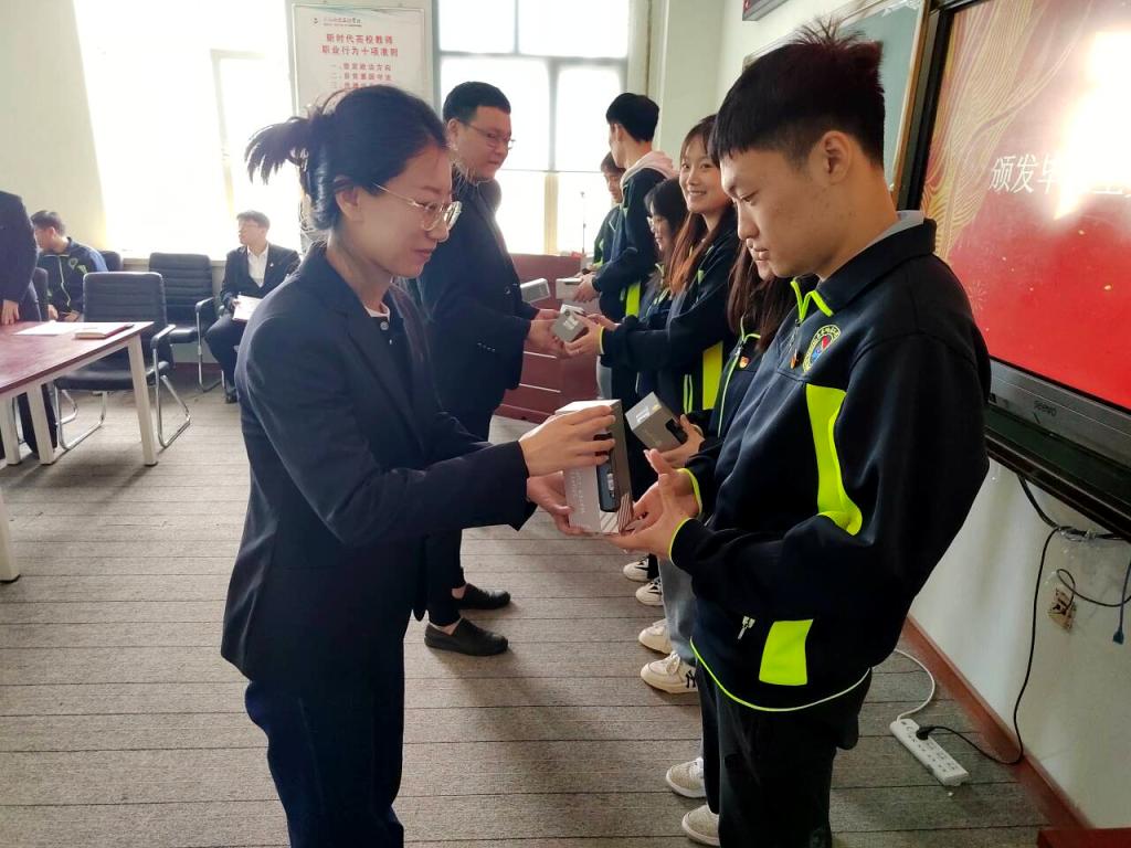 最后,机电工程系党总支教师为全体毕业生发放纪念品及党员提示卡,各支部在校党员录制短视频对学长给予的帮助表示由衷的感激,对即将远航的毕业生党员送去真挚的祝福。