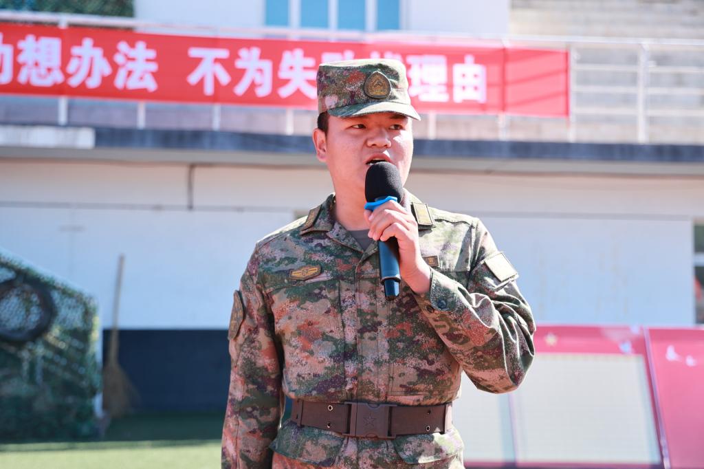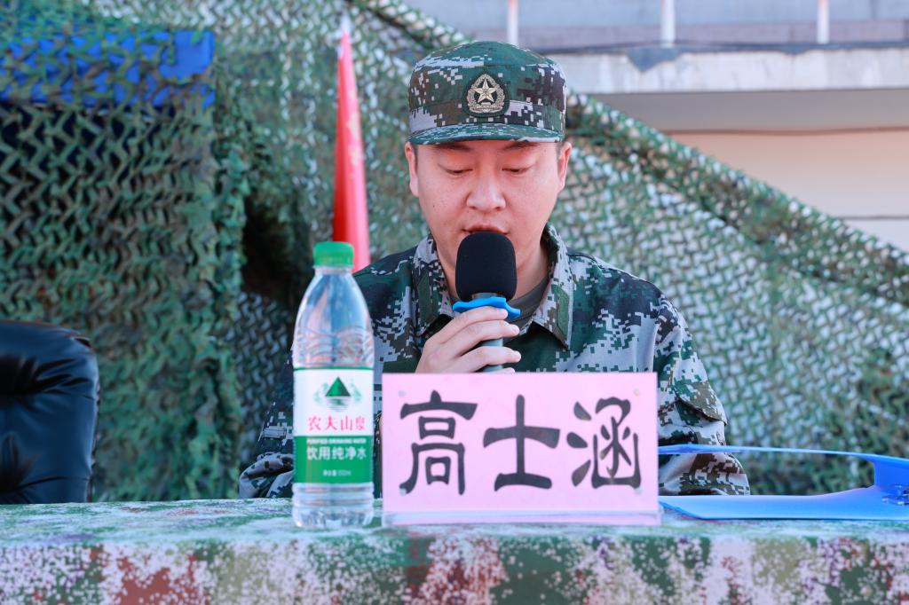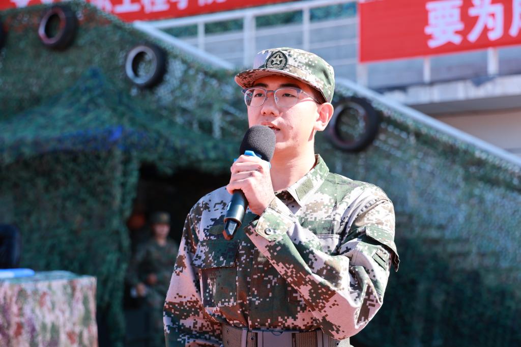 管理工程系互联网金融专业汤喜宣作为新生代表发言,他表示,全体新生将以饱满的热情和必胜的信心迎接挑战,圆满完成军事技能训练的各项任务。