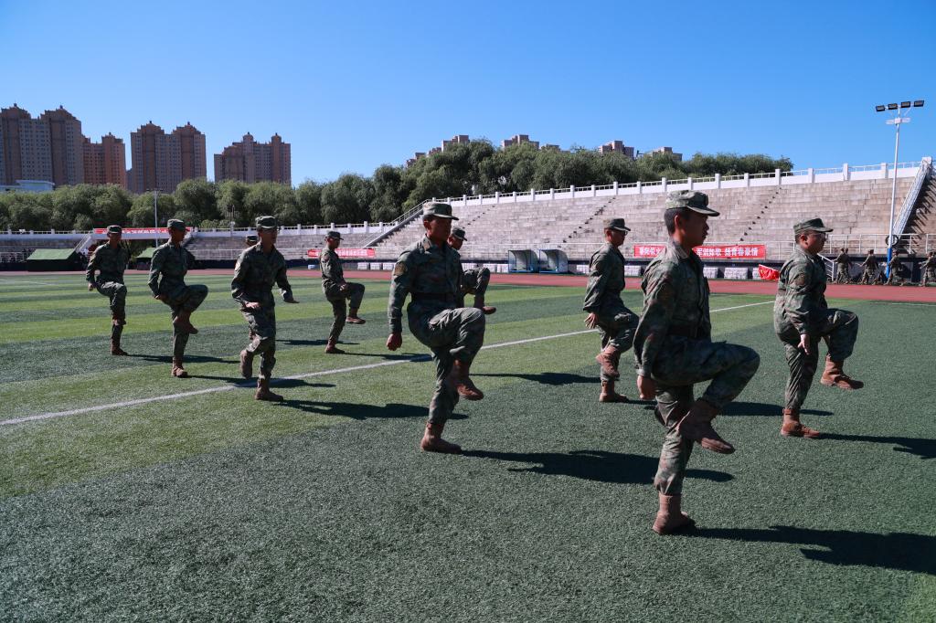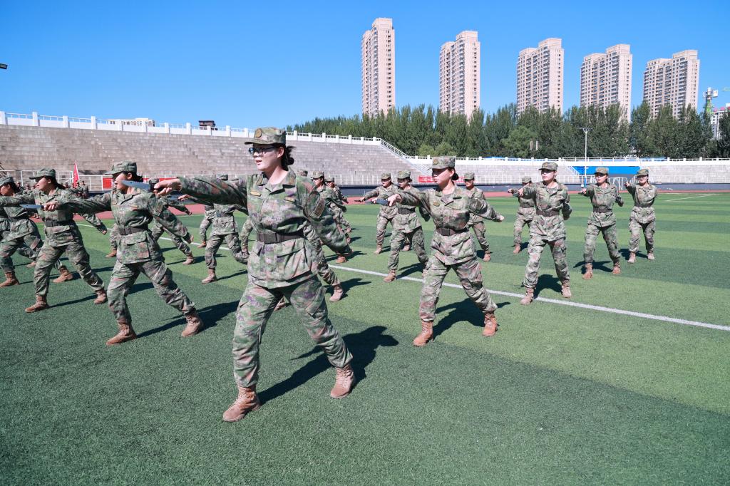 开营式上,学长教官们进行军事技能训练科目汇报展示,整齐划一的动作、嘹亮的口号,让在场师生感受到军人的风采,也为即将开始军事技能训练的新生们树立了榜样。
