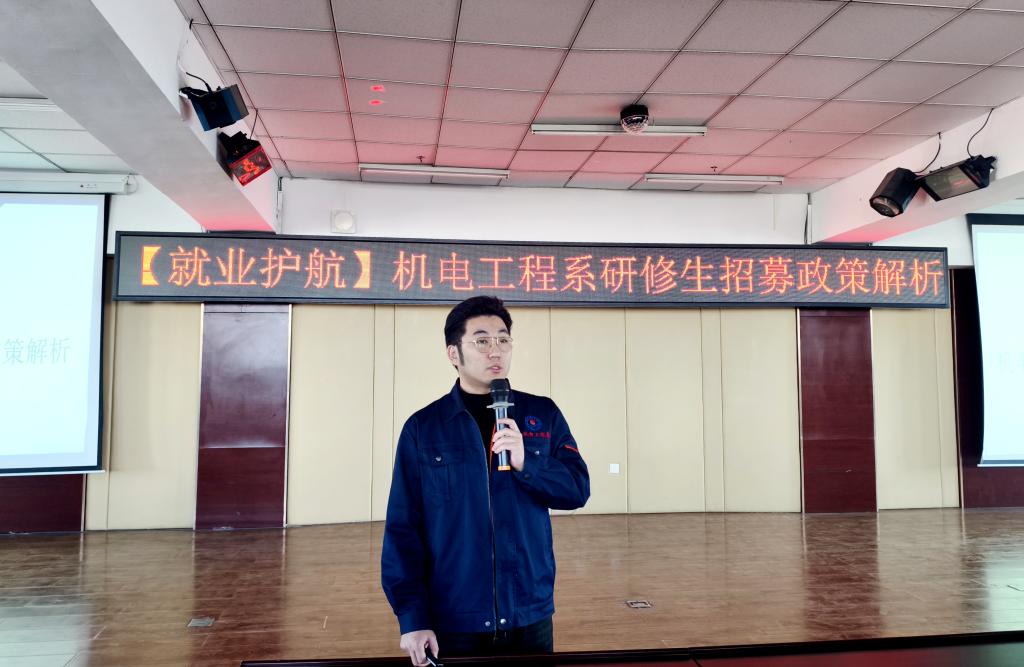 近日,机电工程系在图书馆501会议室举办了“就业护航”机电工程系研修生招募政策解析会。系主任敖林喆、毕业班辅导员以及2021级学生参加,系党总支副书记于海龙主持。