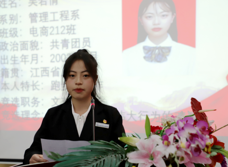 学生代表各部长侯选人进行竞选陈述。17位竞选人员回顾了自己过往的工作和学习,对校学生会未来发展提出自己的建议。