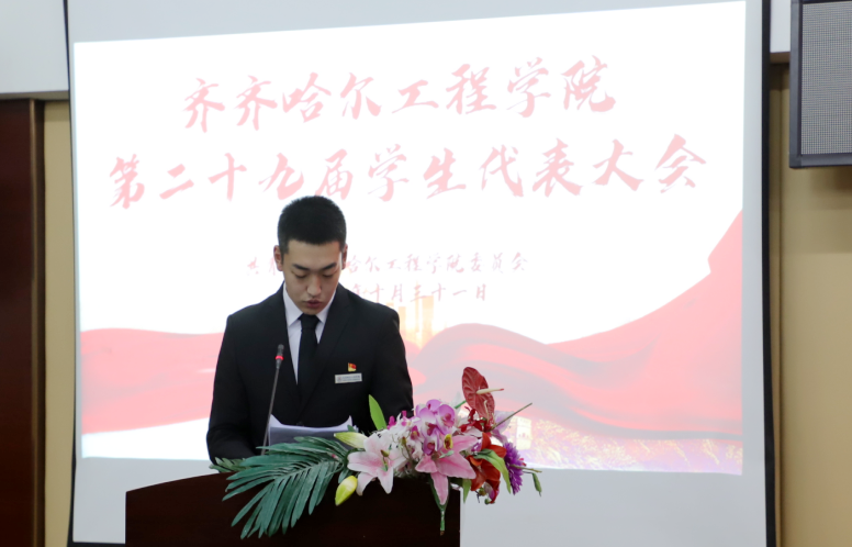 学生会执行主席李泽旭宣读《乐投app官方在线入口第二十九届学生代表大会筹备工作报告》。