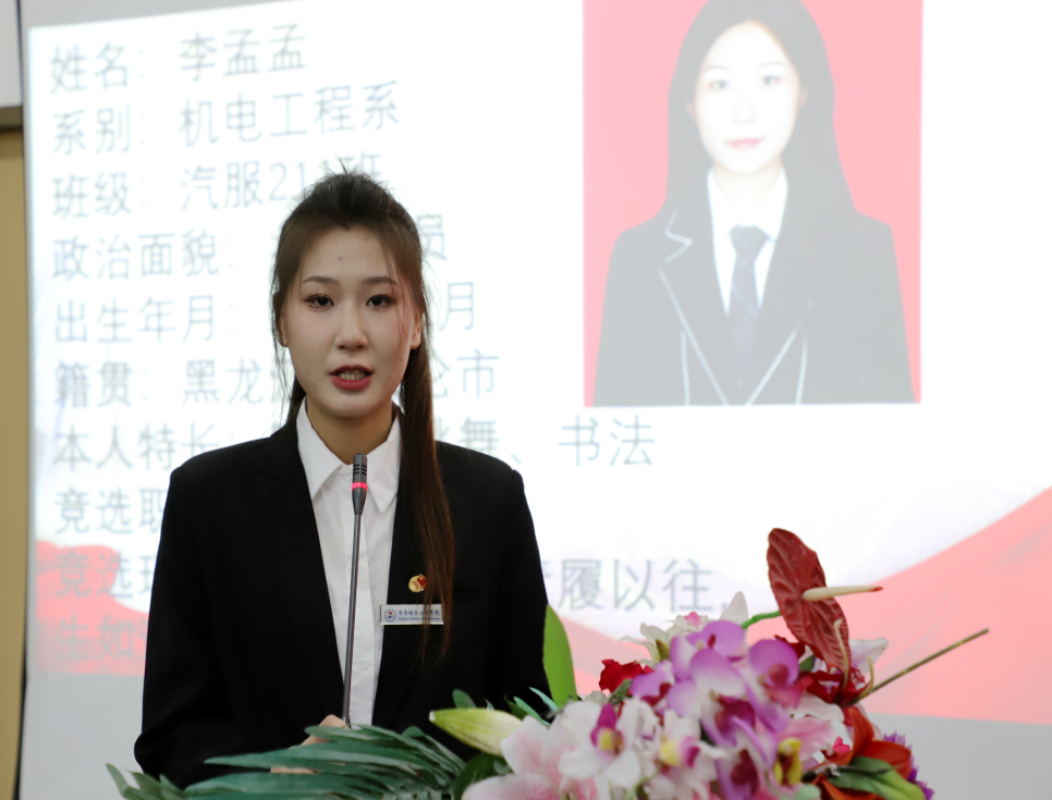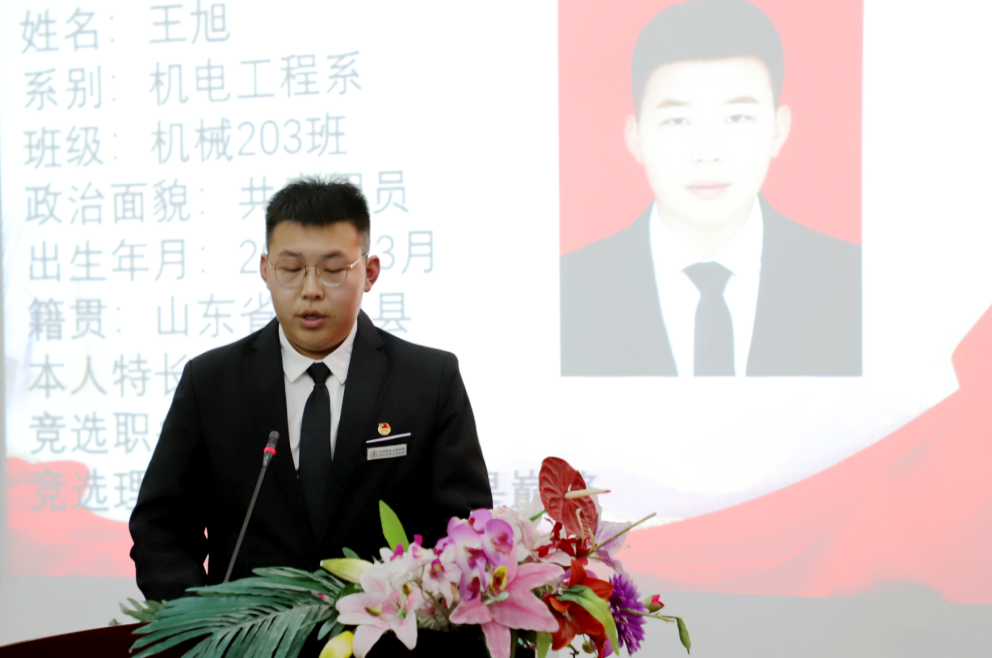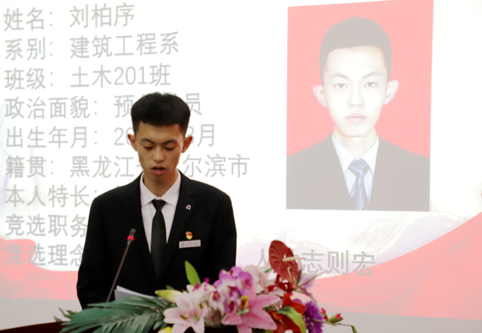 学生代表委员会4名主席团候选人依次上台进行竞选演讲。他们分别从过去两年工作中曾担任的职务、活动工作经历,以及个人所获荣誉等方面进行了竞选陈述,并表示,若能当选新一届主席团成员,必将竭尽所能为学生服务。