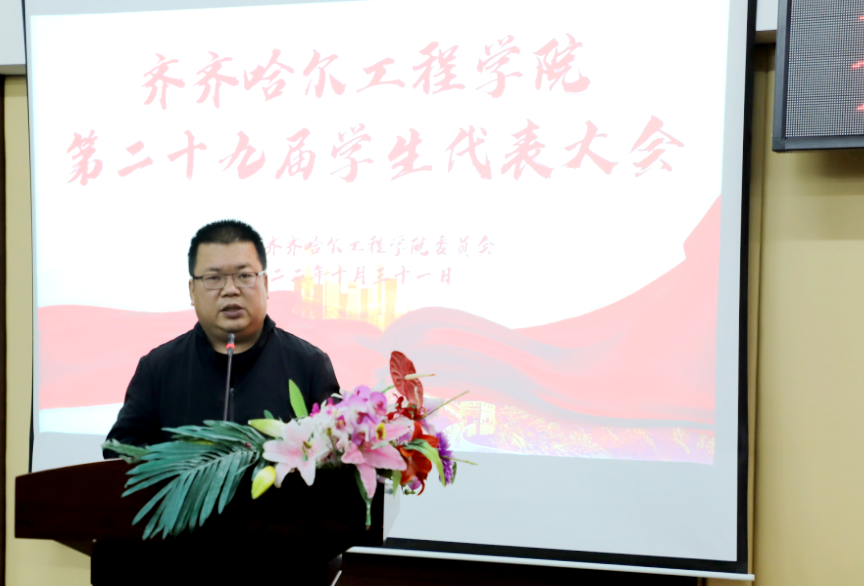 10月31日17点,学校第二十九届学生代表大会在图书馆501报告厅举行,副院长张振笋出席会议,团委书记郭明敬、各系学生工作副主任、各系学生会指导教师以及学生代表共200余人参加。