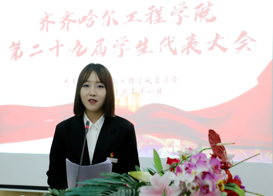 随后,校学生会执行主席梁淼代表第二十八届学生委员会作了题为《全面贯彻新时代中国特色社会主义思想 树立青春之梦 共创时代华章》的工作报告。总结一年来,校学生会在思想引领、队伍建设、校园文化等各方面取得的成绩以及各个部门的发展情况,并对下一阶段的学生工作赋予新的希望。
