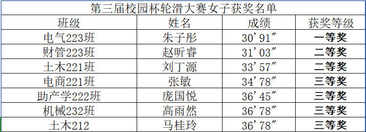 比赛中,参赛队员展现了娴熟的技术,他们飞速地滑过赛道,展现了高超的控制能力和卓越的平衡感。最终,电气223班钟镇阳、朱子彤分别获得男女组一等奖。