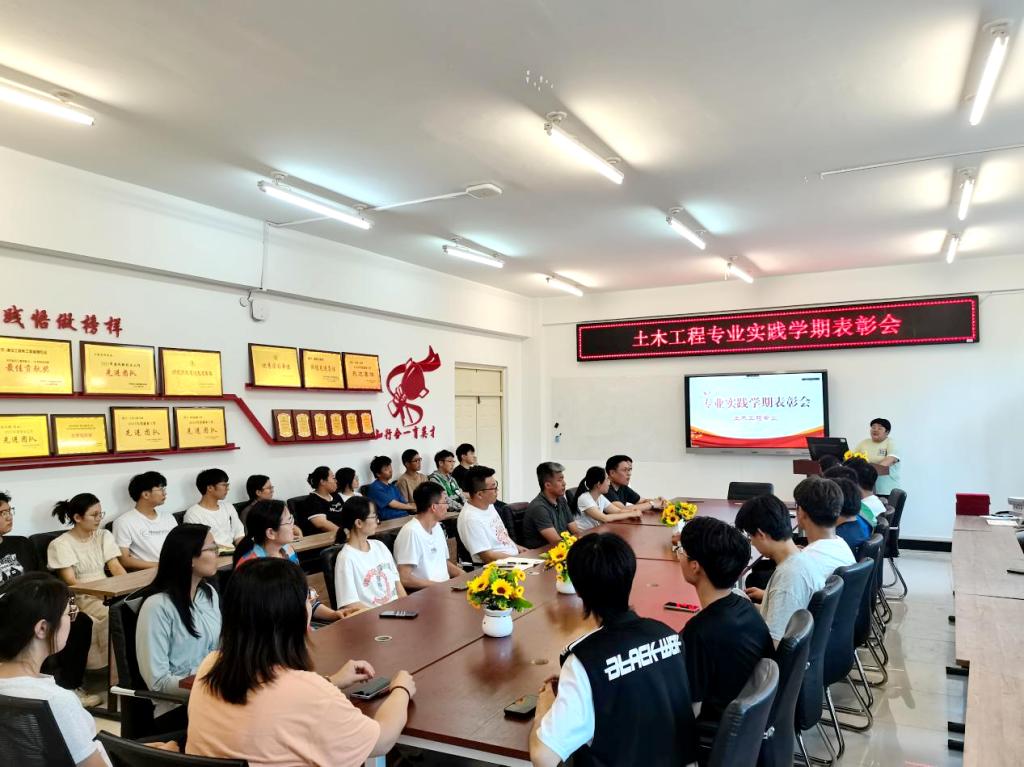 7月24日,建筑工程系土木工程专业实践学期阶段表彰大会在二号教学区2409教室举行,钟美慧老师主持,土木工程专业全体教师和学生代表参加。