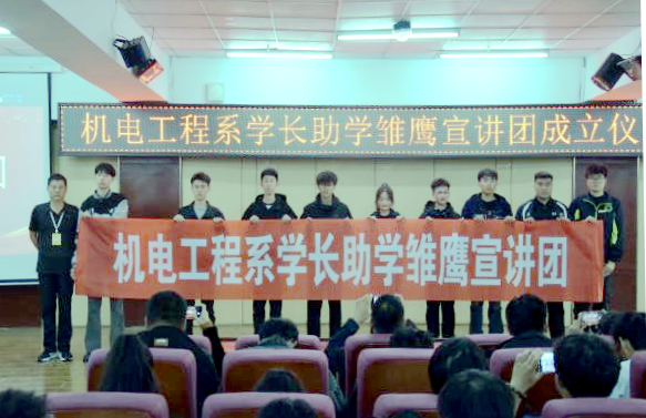 为了发挥优秀学长的榜样引领作用,帮助新生更好地适应大学生活,9月26日,机电工程系在图书馆501报告厅举行学长助学雏鹰宣讲团成立仪式。机电工程系党总支副书记于海龙,辅导员董晓亮、徐飞、张勇、王虹、陈迎春、于月婷老师及部分新生参加。
