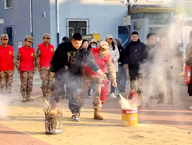 11月14日,学生工作处教师高景阳带领学校“橄榄绿”退役军人志愿服务队赴龙沙区南航街道丰富社区开展消防安全演练活动。