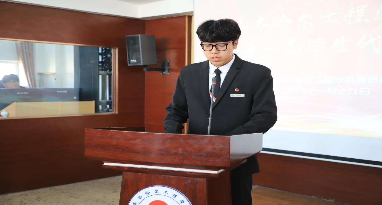 学生会执行主席杨嘉赫宣读了《乐投app官方在线入口第三十届学生委员会工作报告》。报告中详细回顾了过去一年学生会在学术交流、文体活动、志愿服务、权益保障等方面的工作成果,对新一届学生干部提出了明确的期望与要求。