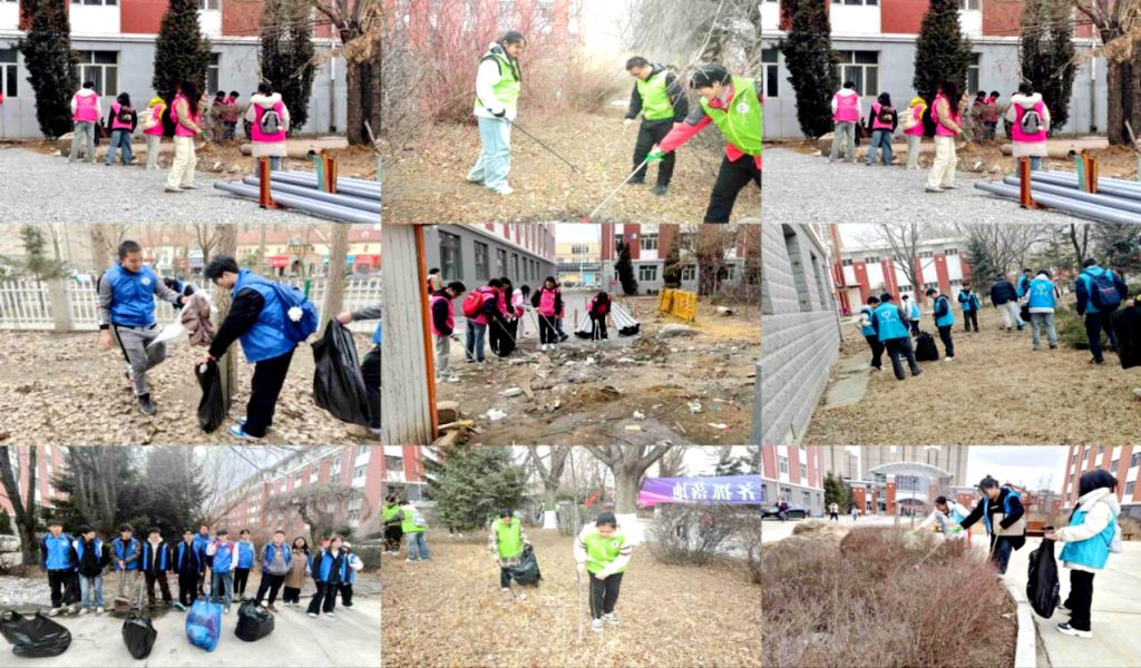 活动当日,参与志愿服务的同学于明德广场集合,在生活部部长的统筹安排下,迅速分组并领取清扫工具,有序前往各自责任区域。