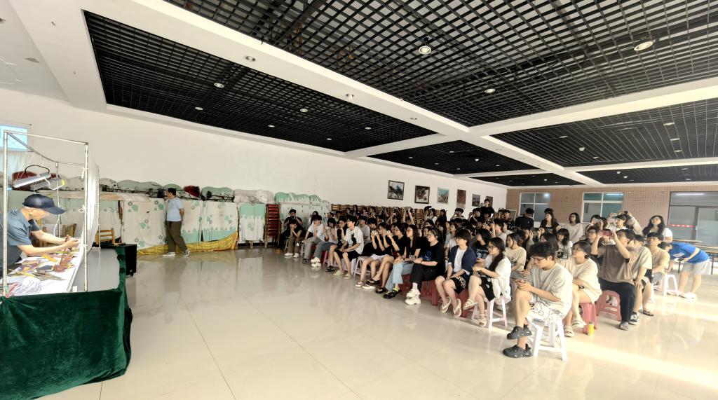 6月24日,在大连写生基地,我校艺术与体育学院邀请国家级皮影戏非遗传承人鄂文武老师,为视觉传达设计专业、动画专业2023级100余名学生带来了一场生动的皮影艺术指导。