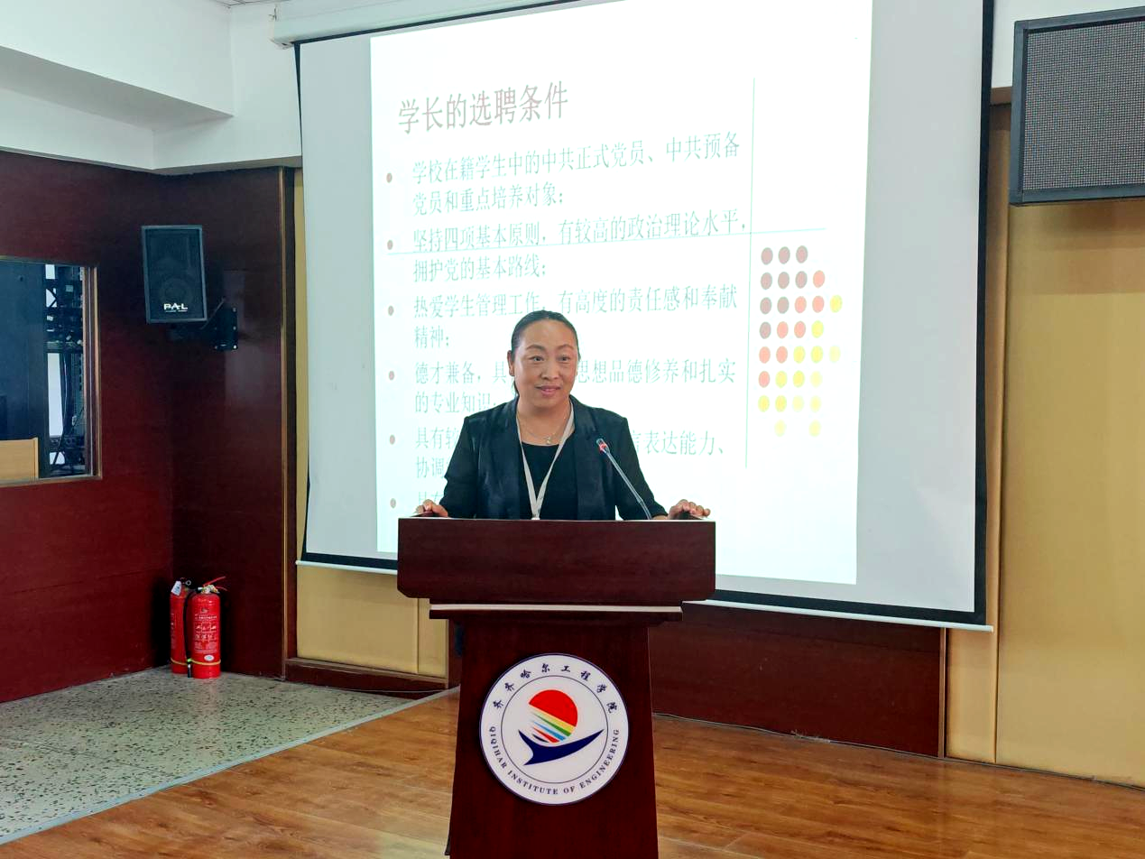 随后,王丽萍进行了提升学长能力素质的主题培训。她结合自身多年从事学生工作的丰富经验,从沟通技巧、团队协作、问题解决等多个维度,详细讲解了学长工作的具体方法与技巧,深入阐述了学生干部应具备的核心素质与能力,包括责任心、领导力、服务意识等关键要素。培训过程中,王丽萍处长通过实际案例分析和互动交流,使培训内容更加生动、易于理解,贴合学长们的工作实际,为学长们后续高效、有序地开展工作提供了有力的指导。
