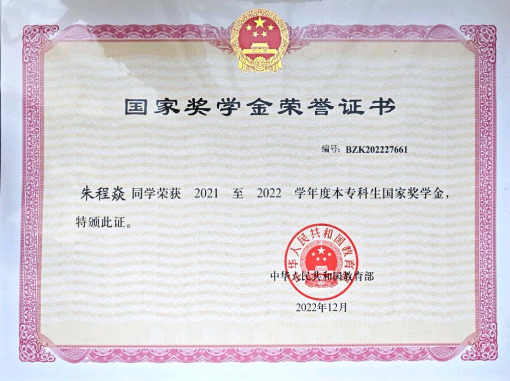 在学业上,他始终保持着“钻牛角尖”般的执着,专业成绩常年名列前茅,先后七次斩获校级一等奖学金,并凭借优异表现荣获“2021-2022学年度本专科生国家奖学”“2021-2023学年度国家励志奖学金”,两次被评为“校三好学生”。他深知“实践出真知”,荣获两次专业实践学期“优秀实习生”称号,将课堂理论与实操技能深度融合。
