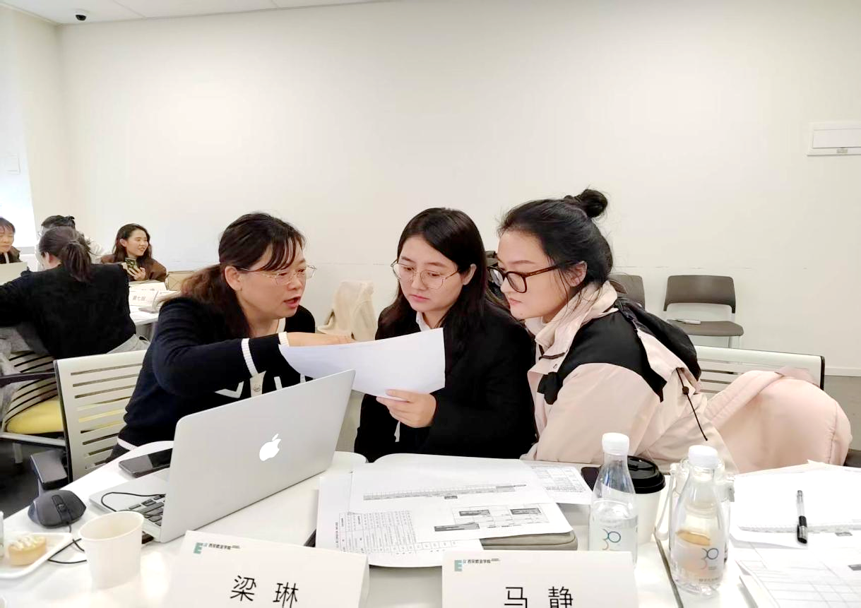 在分组研修环节,张洪岩引导参会教师开展一二三级矩阵开发实操,以三级矩阵为重点,通过任务驱动、沉浸式互动,帮助学员掌握课程开发方法,针对三级矩阵开发中的重难点,引导教师结合自身课程实际设计项目教学目标、拆解课点、设计学习产出及测量标准,理解课程开发的逻辑,体验工作坊的教学组织形式。参会教师普遍认为实操环节干货满满,既掌握了课程开发方法,又体验了高效的教学组织形式。
