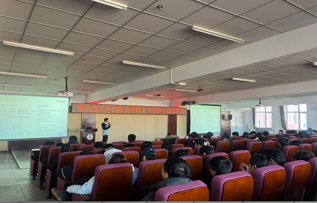 交流会后,博众精工团队还面向2026届毕业生开展专场宣讲,详细解读企业招聘需求、福利待遇与职业发展平台,现场与百余名学生进行互动答疑,多名学生达成初步就业意向。