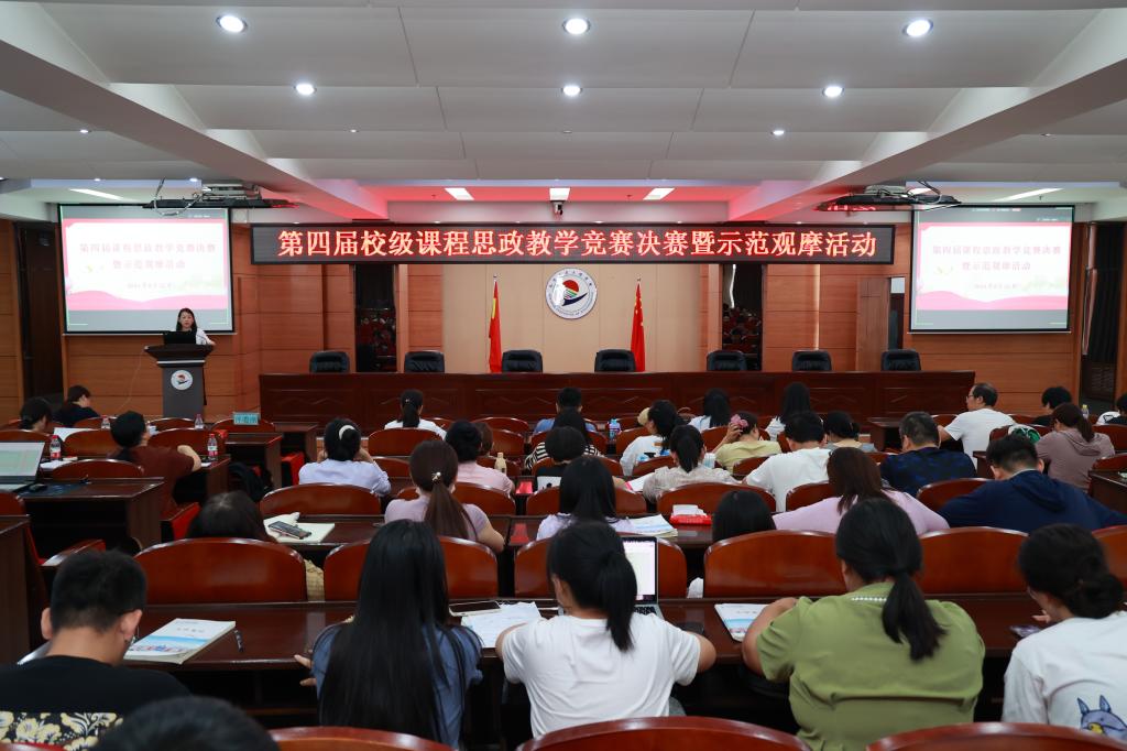 为深入推进习近平新时代中国特色社会主义思想进教材、进课堂、进头脑,8月26日下午,学校在图书馆601举行第四届校级课程思政教学竞赛决赛暨示范观摩活动。院长、党委副书记曹然彬,副院长张静,相关职能部门、教学单位负责人出席活动,全体教工线上线下观摩,活动由教务处副处长郝丽娜主持。