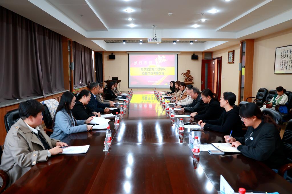 10月30日,在图书馆603南会议室,黑龙江省教育法治学会会长、黑龙江省教育厅原法规处处长任铭越带领哈尔滨信息工程学院党委委员、副校长张丽丽一行八人来校考察交流座谈。院长曹然彬、副院长白雪、副院长张静、理事姜岩、教务处兼科研处处长王丹、全面质量管理办公室主任孟艳辉、教育发展中心主任潘宇、人事处副处长张平及相关部门负责人参加座谈会。座谈会由张静主持。任铭越首先感谢学校理事长曹勇安对哈尔滨信息工程学院来访...