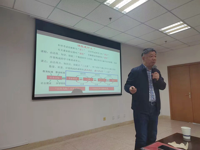 11月30日上午,学校理事长曹勇安教授应邀在新乡职业技术学院实验楼一楼阶梯教室开展《职业教育课程开发与管理》专题讲座。该学院各二级学院分管教学副院长、教研室主任、教学质量工程项目负责人、骨干教师等200余人参加此次讲座。讲座中,曹理事长诠释了课程建设在整个人才培养方案中的重要性,阐述了“真实环境、真学、真做、掌握真本领”、“工作任务系统化、教学任务工作化、工作任务课程化”以及“四真三化”(FT)课程建设...
