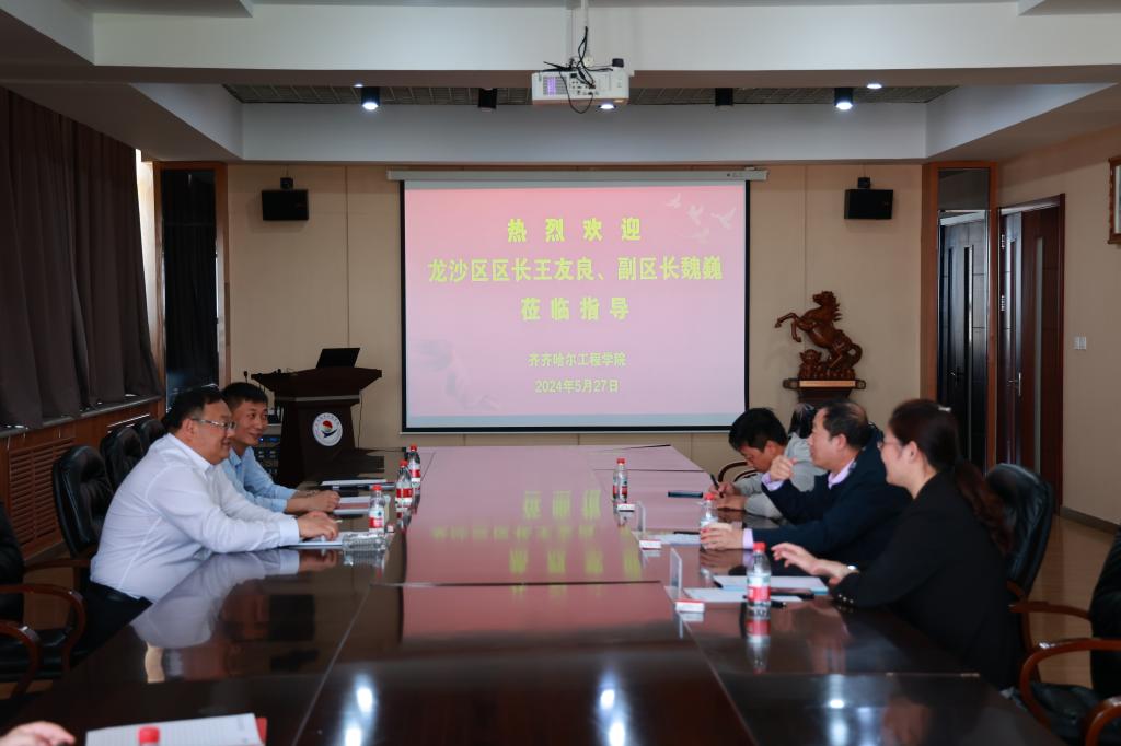 5月27日,齐齐哈尔市龙沙区区长王友良、副区长魏巍来校调研指导,院长曹然彬、副院长白雪、基建办主任崔晓东陪同调研。校区双方在图书馆603南会议室进行座谈。曹然彬对王友良一行来校表示热烈的欢迎,对龙沙区政府一直以来对学校给予的关心和支持表示感谢,并围绕学校办学特色、校园北区在建项目以及学校未来发展规划和前景等方面作了详细介绍,希望双方进一步加强沟通联系,增进合作交流,发挥各自优势,共促校地融合发展。...