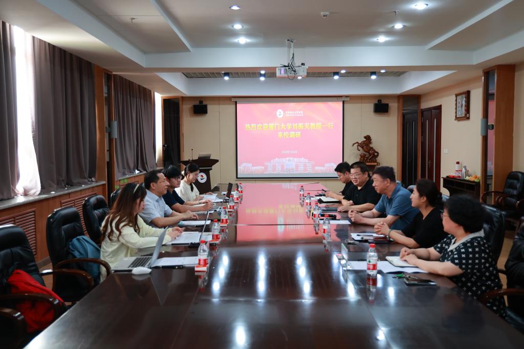 7月6日至8日,厦门大学教育研究院党委书记刘振天率博士生一行5人来校调研,理事长曹勇安、常务副院长陈景鑫、副院长张静、监事会主席张振笋出席相关活动,相关部门负责人陪同调研。6日下午,学校在图书馆603会议室召开见面会,曹勇安教授代表学校对刘振天一行表示欢迎,介绍了学校办学历程、课程建设以及学校未来发展方向。指出,学校坚持“围绕专业办企业,围绕产业开专业”的办学思路,深化校企合作、产教融合,优化专业结...