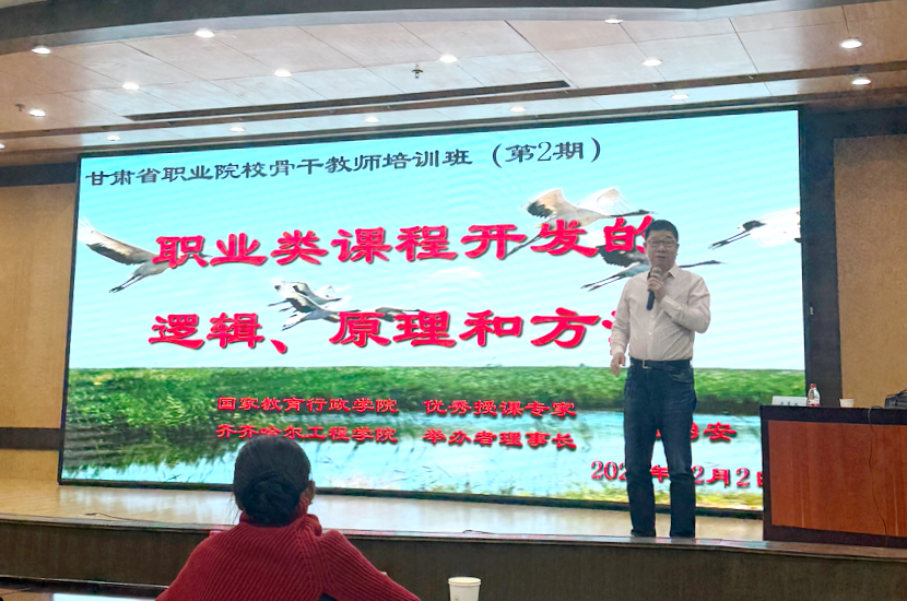 12月2日,我校创校校长、理事长曹勇安应邀参加由甘肃省教育厅主办、兰州大学培训中心承办的“骨干教师和专业带头人能力提升培训班”并作专题讲座。此次培训汇聚众多知名专家学者,旨在加强参训教师对现代职业教育理念的理解,提升其在课程开发、教学创新、数字化应用与团队引领等方面的综合能力。 曹勇安以《职业类课程开发的逻辑、原理和方法》为题,详细阐述了从人才培养目标到课点的课程开发与质量保障的底层逻辑,重点解读...