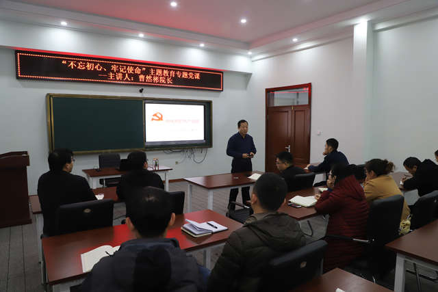 10月30日下午,学院理事长曹勇安为全体教职工讲授《不忘初心、牢记使命,乘评估东风持续改进》专题党课。 曹勇安理事长通过对中国共产党第一次代表大会13位代表后来分别走上三条不同道路的分析,阐述了作为中国共产党...