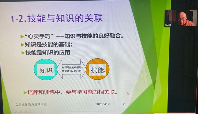 4月17日晚,张永春教授“五种能力”系列讲座之实践动手能力讲座以在线方式进行,学校近400位教职工参加学习,副院长张振笋主持此次学习活动。 张永春教授以阐述操作技能和操作能力两个概念的区别展开此次讲座,指出实...