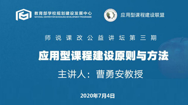 7月4日上午,由教育部学校规划建设发展中心、应用型课程建设联盟主办的“师说课改”公益讲坛(第三期)以线上直播方式举行,我校理事长曹勇安教授应邀作《应用型课程建设原则与方法》专题报告,吸引来自各高校、研究...