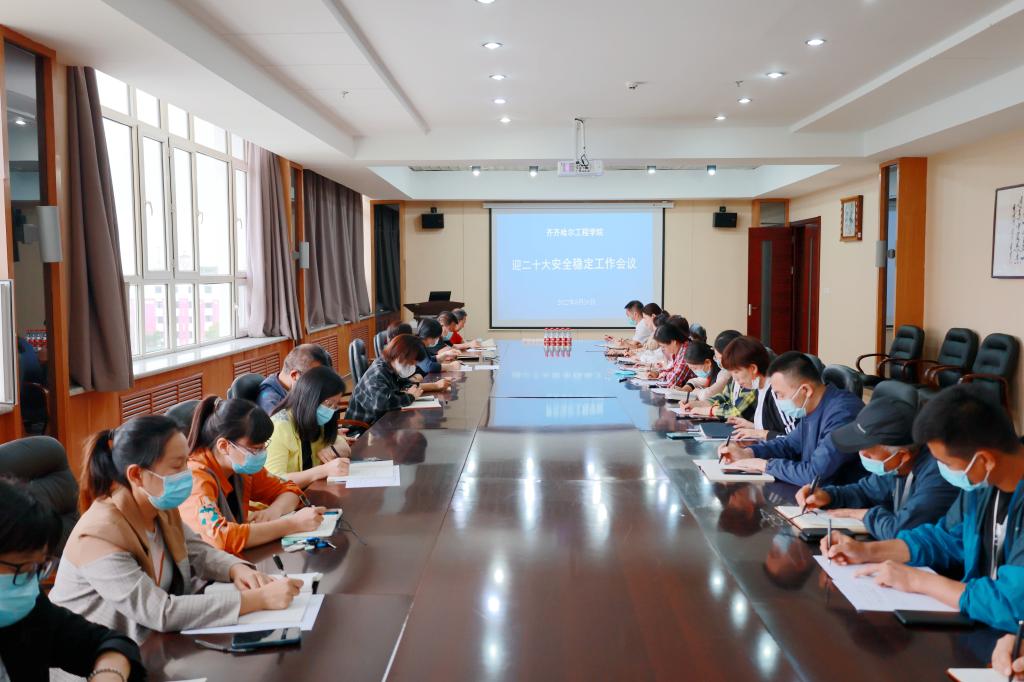 8月26日下午,学校在图书馆603南会议室召开了迎二十大安全稳定工作会议。院长曹然彬、党委书记郭伟东、总会计师姜岩、副院长白雪出席,各部门负责人参加。 会上,白雪副院长传达了《全省“迎二十大安全生产百日攻坚...