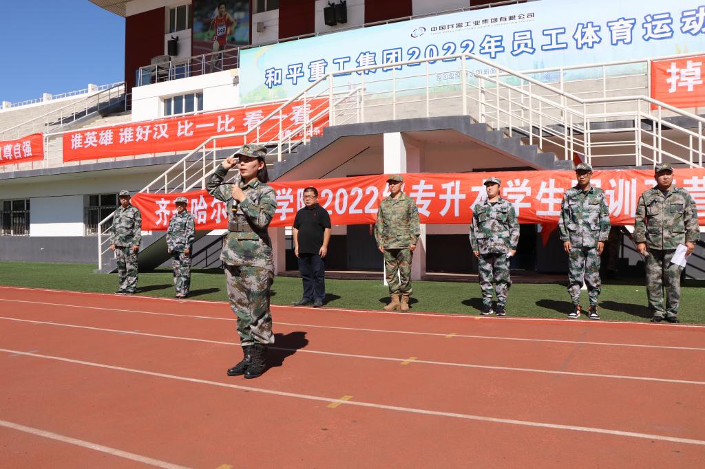 8月23日下午两点,在学校体育场举行了乐投app官方在线入口2022级专升本军训开营仪式。副院长张振笋、龙沙区武装部部长庞永上校、学生工作处负责人乔亚男、学工处副处长郭明敬出席活动,各系学生工作副主任、军训教官及2...