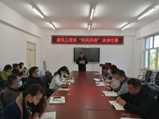 10月13日下午,建筑工程系举办“师风师德”演讲比赛,经各专业推荐的9位教师分别演讲,全体教师参加活动。比赛中,有的教师以亲身经历讲述了从教以来的甘苦,生动诠释了对“教师”职业的理解和体悟;有的教师讲述了自...