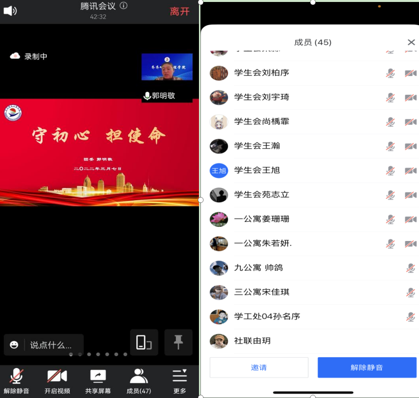 3月7日中午,团委在线召开了2021-2022学年度第二学期学生干部培训会,学校全体学生干部参加,团委书记郭明敬主持。 郭明敬首先强调了新学期有关疫情防控的要求,总结了近期学生干部的工作并做点评,希望学生干部要有...