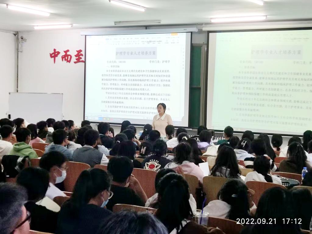 9月21日晚,护理学专业在一号教学区1101教室组织开展职业前瞻“专业再认识”讲座。2022级全体学生参加,专业长张林琳主持。 学生前期通过新生入学教育、军事训练等活动已对该专业有所了解,本次讲座随机抽取学生以“...