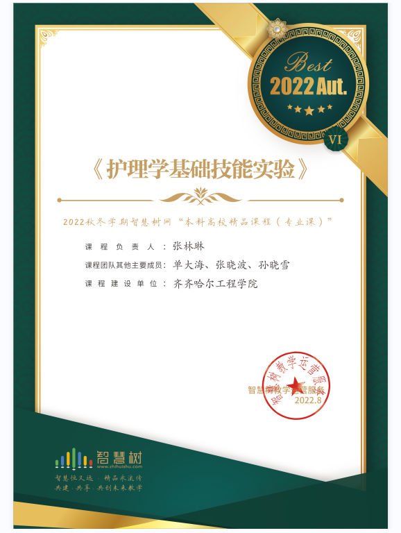 不久前,护理学专业在线开放课程《护理学基础技能实验》经由智慧树推荐评选后被评为2022秋冬学期“本科高校精品课程(专业课)”,据悉荣获此项荣誉课程全国有150门课程左右,占平台全部课程总数2.15%。 这是护理学专...