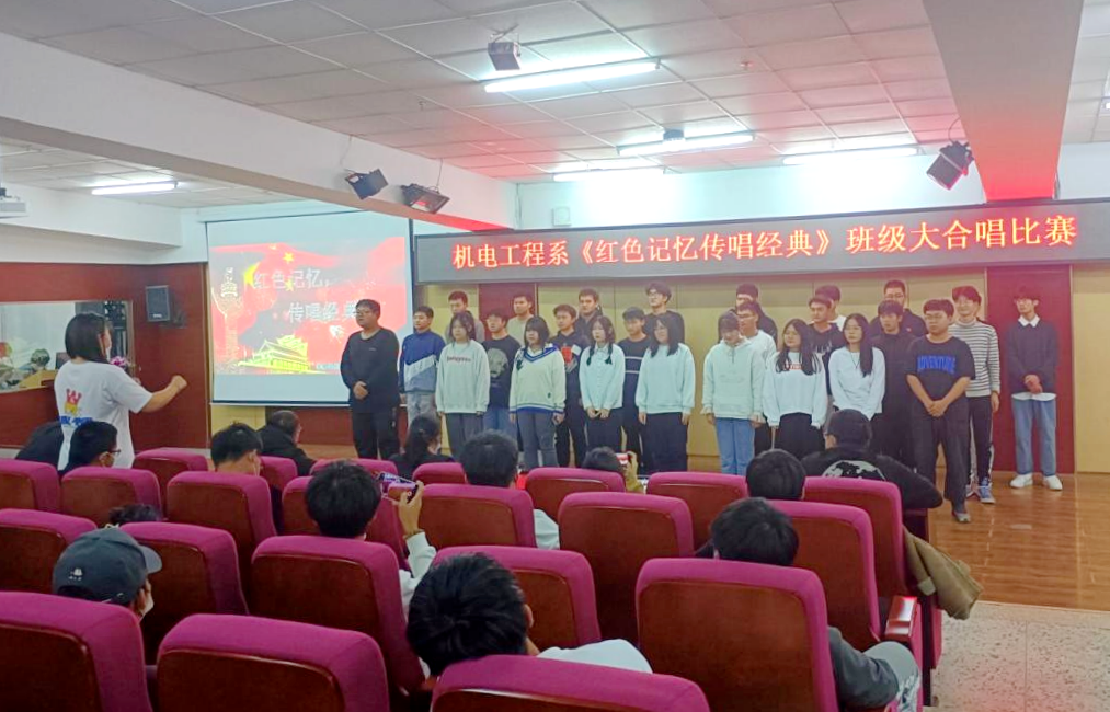 11月22日,机电工程系学生会文艺部在图书馆501报告厅举办了“红色记忆•传唱经典”合唱比赛。系党总支书记、学生工作副主任王丽萍,系主任助理敖林喆,学生会指导教师张勇,辅导员于海龙、王虹、白士元、王洪春担任本...